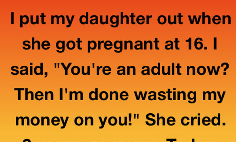 I put my daughter out when she got pregnant at 16. I said, “You’re an adult now? Then I’m done wasting my money on you!” My words were like jagged stones, meant to hurt because I was hurting. I was terrified of the gossip in our small Ohio town and angry that she’d “ruined” the perfect life I’d planned for her. I watched her pack a single duffel bag, her face red and swollen from crying, and I didn’t reach out to stop her as she walked down the driveway into the rain.