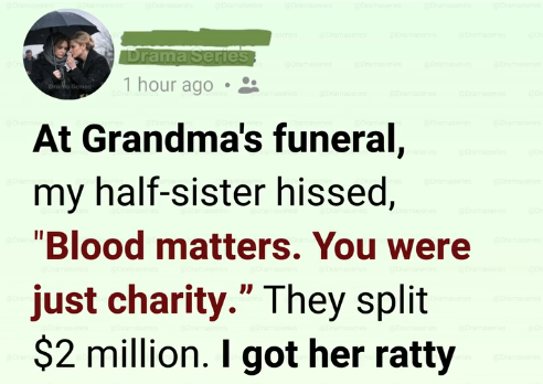 I stood beneath a black umbrella, fingers numb, listening to the soft thud of dirt hitting polished wood. The wind whipped through the cemetery, tugging at the edges of my borrowed scarf. Beside me, my half-sister Victoria dabbed at perfectly dry eyes with a lace handkerchief.