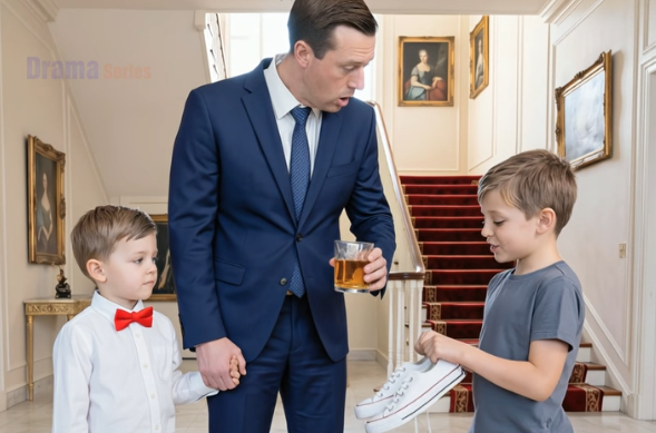 He was standing in the marble-floored foyer, still dressed in his tailored suit, a glass of amber liquid slowly warming in his hand. The day’s meetings had blurred into one another, each conversation hollow and interchangeable, leaving him mentally drained but restless.