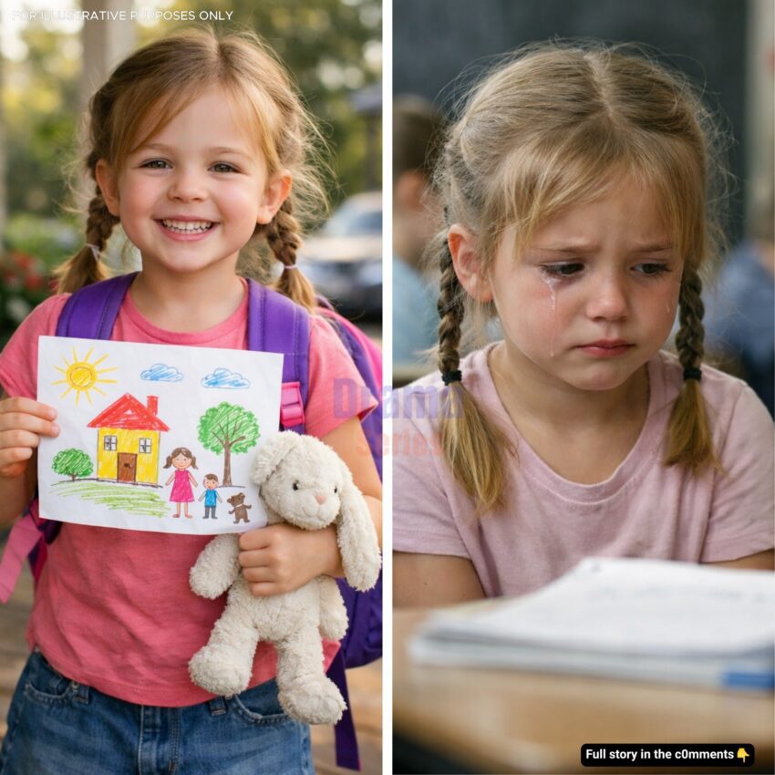 I wondered if she’d gotten a bad grade or had a fight with friends, but she refused to talk. That afternoon, she didn’t run into my arms. She walked slowly, head down, clutching her backpack like it was holding her together. Her sweater bore a thick black line across the front, as if someone had drawn on it. Her drawings were crumpled.