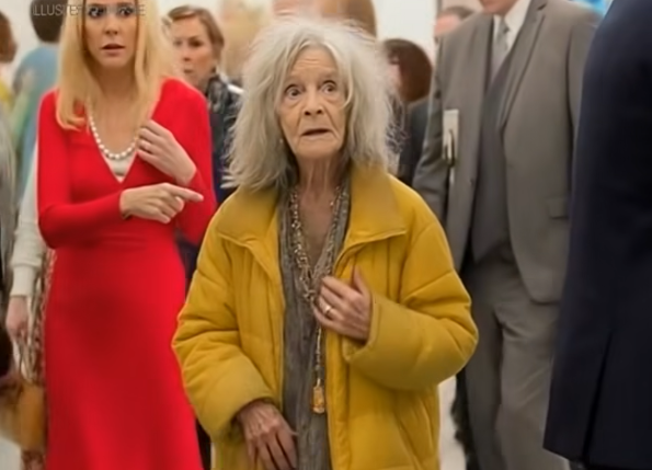 Around us, the atmosphere buzzed with discomfort. The same women who had scowled at her now stood with their backs turned, pretending to admire nearby pieces while still whispering, their words soaked in judgment.