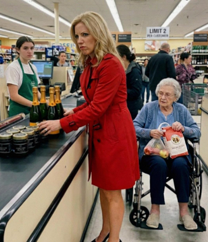 Her cart was overflowing with luxury: champagne, wagyu, caviar, things wrapped like gifts. She didn’t even glance at the line.