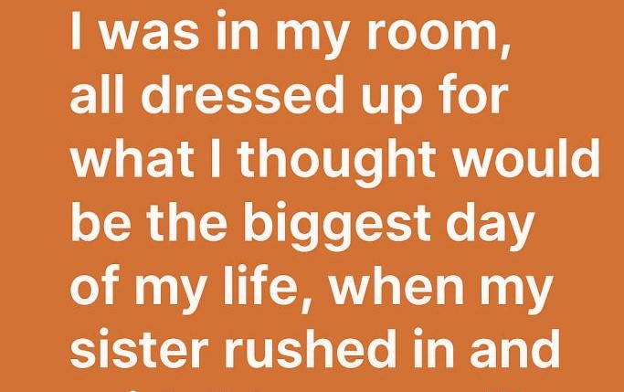 “Hi everyone. I know this isn’t how weddings are supposed to start, and I’m sorry. But before we go any further, there’s something you all need to hear.”