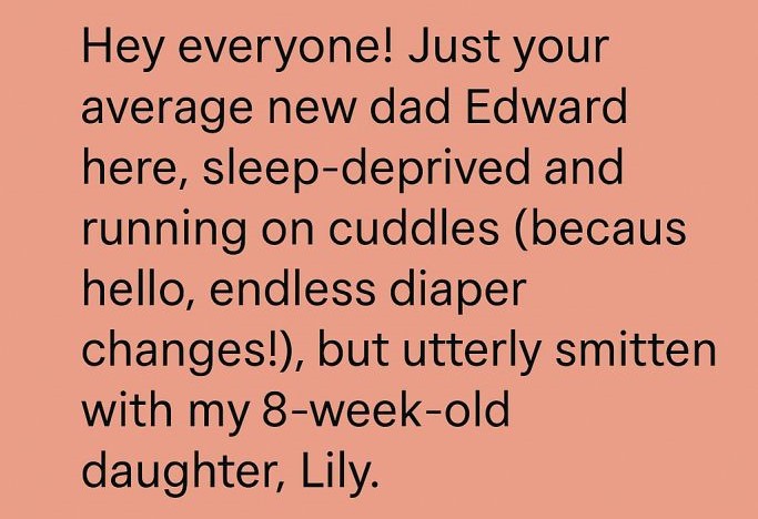 Hey everyone! Just your average new dad Edward here, sleep-deprived and running on cuddles (because hello, endless diaper changes!), but utterly smitten with my 8-week-old daughter, Lily.