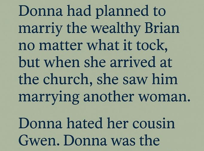 Donna had always hated Gwen. She would never admit it out loud, but jealousy burned inside her. Donna was prettier by far—voluptuous, striking, with a flair for drama—but life hadn’t dealt her the same hand. Gwen’s mother had married a rich lawyer, while Donna’s mother had married a poor man.