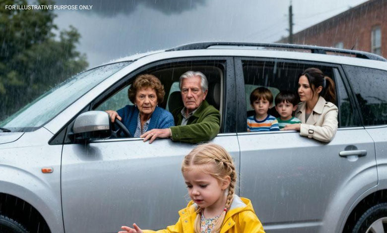 “Are you Lily’s mother?” she asked right away. Her voice sounded tense. “She’s standing outside the school gate in the rain. She’s crying and completely soaked. She said your parents were supposed to pick her up, but they drove away.”