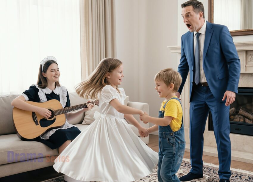 Before he reached the center of the living room, he heard laughter—bright, unfiltered, undeniably joyful laughter. A child’s laughter. Beneath it floated the gentle strum of a guitar—soft, warm, slightly imperfect in a way that made it unmistakably real.