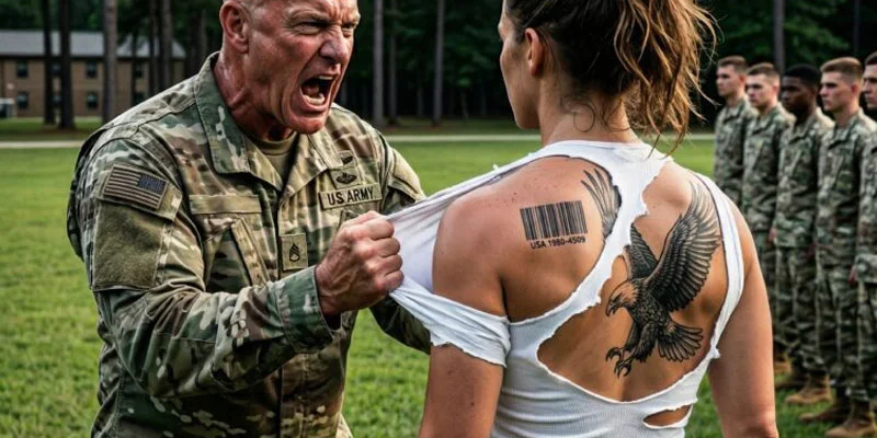 The primary antagonist of my daily life was Major Grant Mercer, a man whose broad shoulders were matched only by an ego that mistook aggression for leadership. To Mercer, I was a “glitch in the machine,” an affront to the bloodlines he believed were required to stand on that hallowed ground. The breaking point arrived during a field inspection overseen by General Warren Brennan himself. More than two hundred operators stood in rigid formation under the harsh, uncompromising Colorado sun. Brennan moved down the line with the cold, mechanical precision of a man who viewed soldiers as assets rather than humans. Mercer, emboldened by the lingering bravado of the previous night’s drinking, muttered “deadweight” just loud enough to ripple through the ranks. Then, in an act of dismissive arrogance, he grabbed my shoulder to jerk me into a “correct” alignment. The fabric of my training shirt gave way, tearing open to reveal the ink on my upper arm: a broken sword crossed by seven black tally marks.