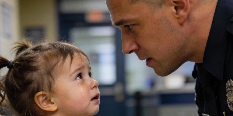 That afternoon, a young family stepped quietly through the station doors—a mother, a father, and their tiny daughter, no more than two years old. The child clung tightly to her parents, her cheeks flushed, her eyes swollen from crying. She looked exhausted, like she had been carrying something far too heavy for someone her age.Her parents didn’t look much better. They exchanged uncertain glances, clearly unsure whether they were doing the right thing—but out of options.