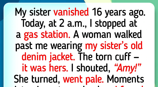 Today, at 2 a.m., I stopped at a gas station. I saw a woman wearing my sister’s denim jacket. The torn cuff, the faded pin — it was hers. I shouted, “Amy!”