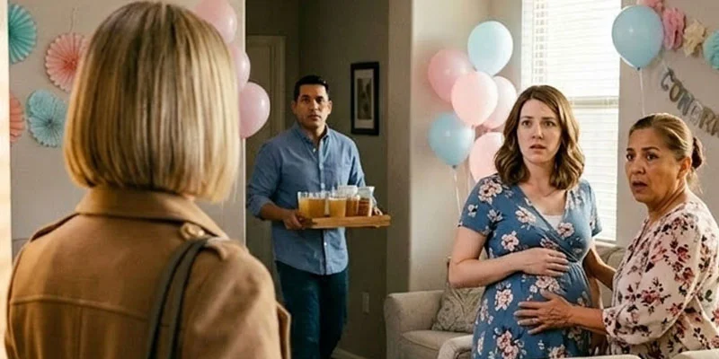 Carmen stood near the sofa, one hand resting on her swollen belly, smiling a small, nervous smile while Miguel’s mother, Rosa, touched her stomach with reverence. My own mother, Julia, stood by the kitchen island filling plastic cups with sparkling cider. There were gift bags, tissue paper, tiny boxes, and a cake with pastel frosting. Everything had been arranged carefully. Everything had been planned.